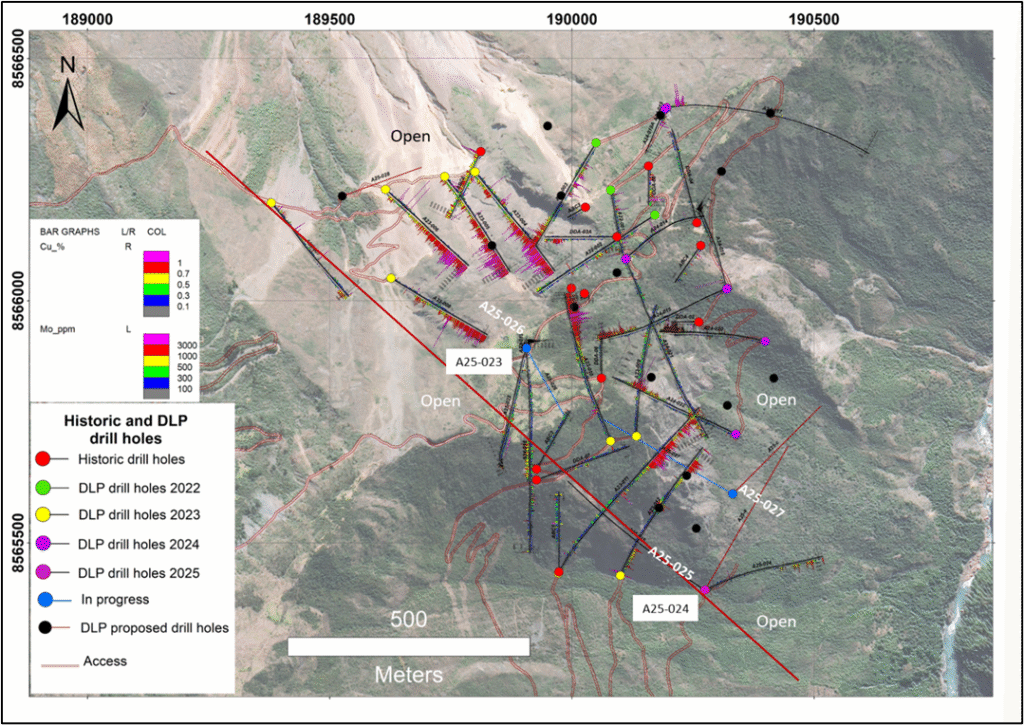 Cranbrook, British Columbia, (Newsfile Corp. – October 22, 2025) DLP Resources Inc. (“DLP” or the “Company”) (TSXV:DLP) (OTCQB:DLPRF) (FSE: J8C) announces receipt of complete drill results for drillholes A25-023 and A25-024 on the Aurora porphyry copper-molybdenum-silver project in southern Peru. (Figure 1).