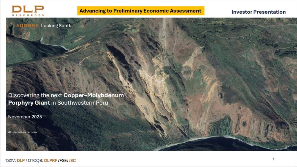 DLP Resources Inc. is a mineral exploration company operating in Peru and Southeastern British Columbia, Canada. Exploring for Base Metals and Cobalt and is listed on the TSX-V, trading symbol DLP, on the OTCQB, trading symbol DLPRF, and on the FSE, trading symbol J8C.